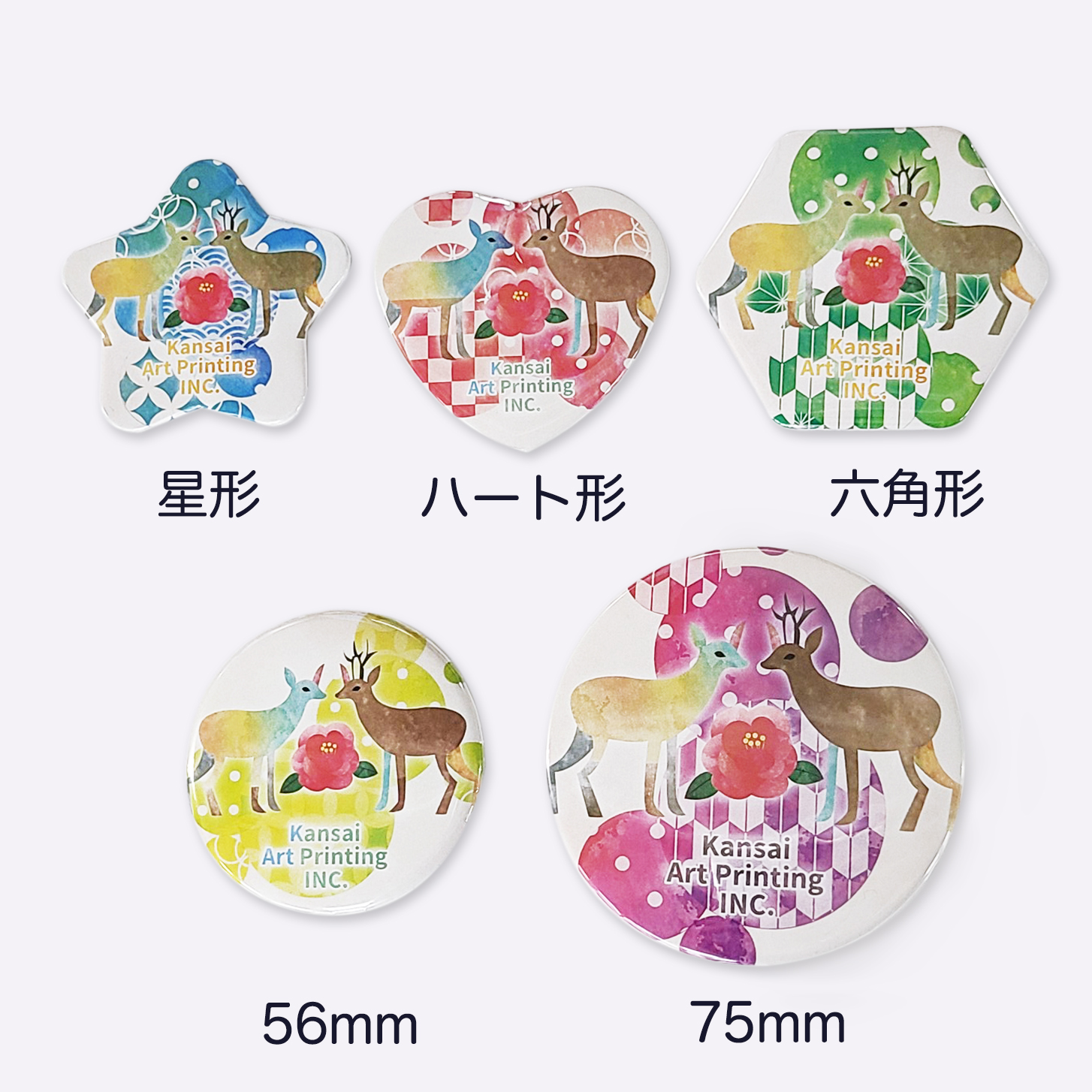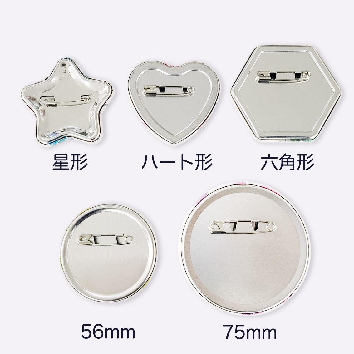 定番のカンバッチです。 サイズの大小、形など たくさんの種類の中から選ぶことができます。 掲載以外の形状、サイズに関しまして、対応可能なものもございますのでお気軽にご相談下さい。